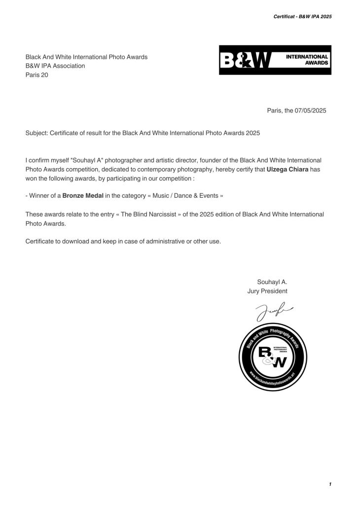 Bronze medal winner in the “Music / Dance & Events” category of the International B&W Photography Awards 2025 photo contest.